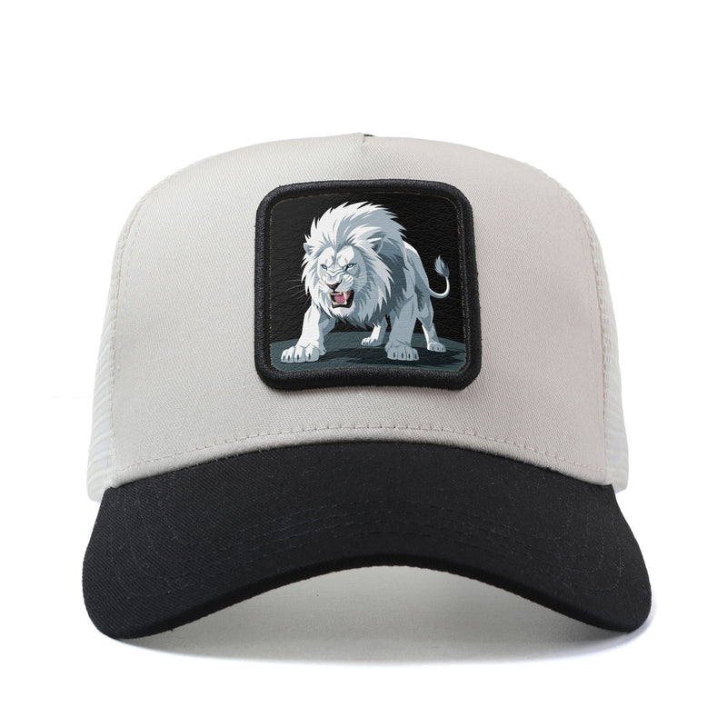 Gorra Trucker Unisex de León Blanco Rugiente 3D Anime/Hip-Hop - Gorra Ajustable con Malla Transpirable, Diseño Ligero y Fresco para Exteriores o Casuales – Emblema del Leon Dorado (Apto unisex, Regalo Ideal)