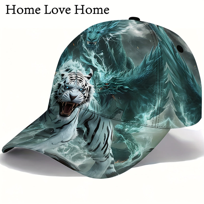 1 gorra de béisbol unisex con diseño único de tigre y dragón, estilo anime, 100% poliéster, para deportes y actividades al aire libre, con visera curva, ideal como regalo